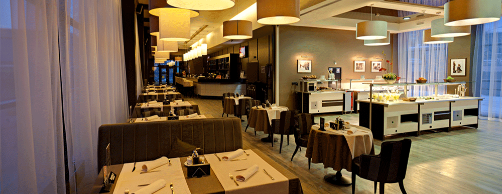 Как узнать ресторан с первого взгляда? Столики, покрытые белыми тканевыми скатертями и тканевые салфетки, лежащие на них в замысловатом узоре в ожидании клиентов. Как правило отдельный сотрудник перед входом, который встретит и проводит вас к столику.